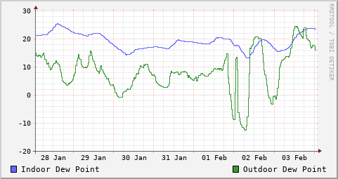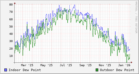 Indoor & Outdoor Dew-Points at our Camp (° F)