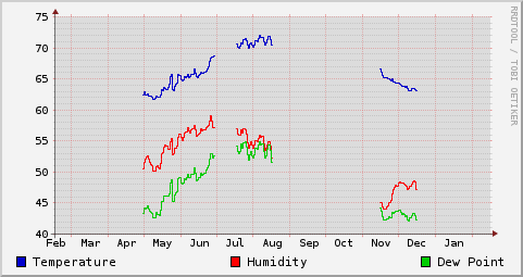 Temperature, Humidity & Dew Point for the preceding Year (ºF). |